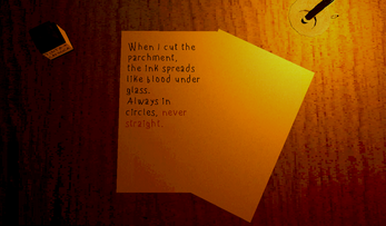 Interesting game! I'm quite curious as to what the entire confessional states. I didn't find any tools but I can't make it through the entire confessional yet, either, so maybe it comes later. One thing I'd like to see is for the game not to take what feels like a minute of time to let me play again. That intro is a bit too slow and leaves me wondering if I need to hit a key to proceed (but this doesn't seem to be the case) -- this could however be where you mention the missing dialogue might be coming up. If the game is progressing through multiple nights in the cell, it'd be nice to be able to hide my papers and start out where I left off the next night, maybe with a limited number of nights to finish, or alternately have the number of nights it takes you be posted to a leaderboard or something similar to invoke players returning and trying to beat their shortest stint in the slammer.